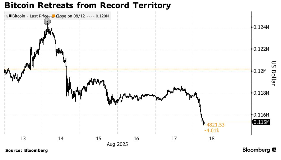此次回调发生在加密资产近期大幅上涨之后。比特币于8月14日创下125514美元的历史新高,以太坊同日则接近2021年11月创下的历史峰值,两者价差不足100美元。
